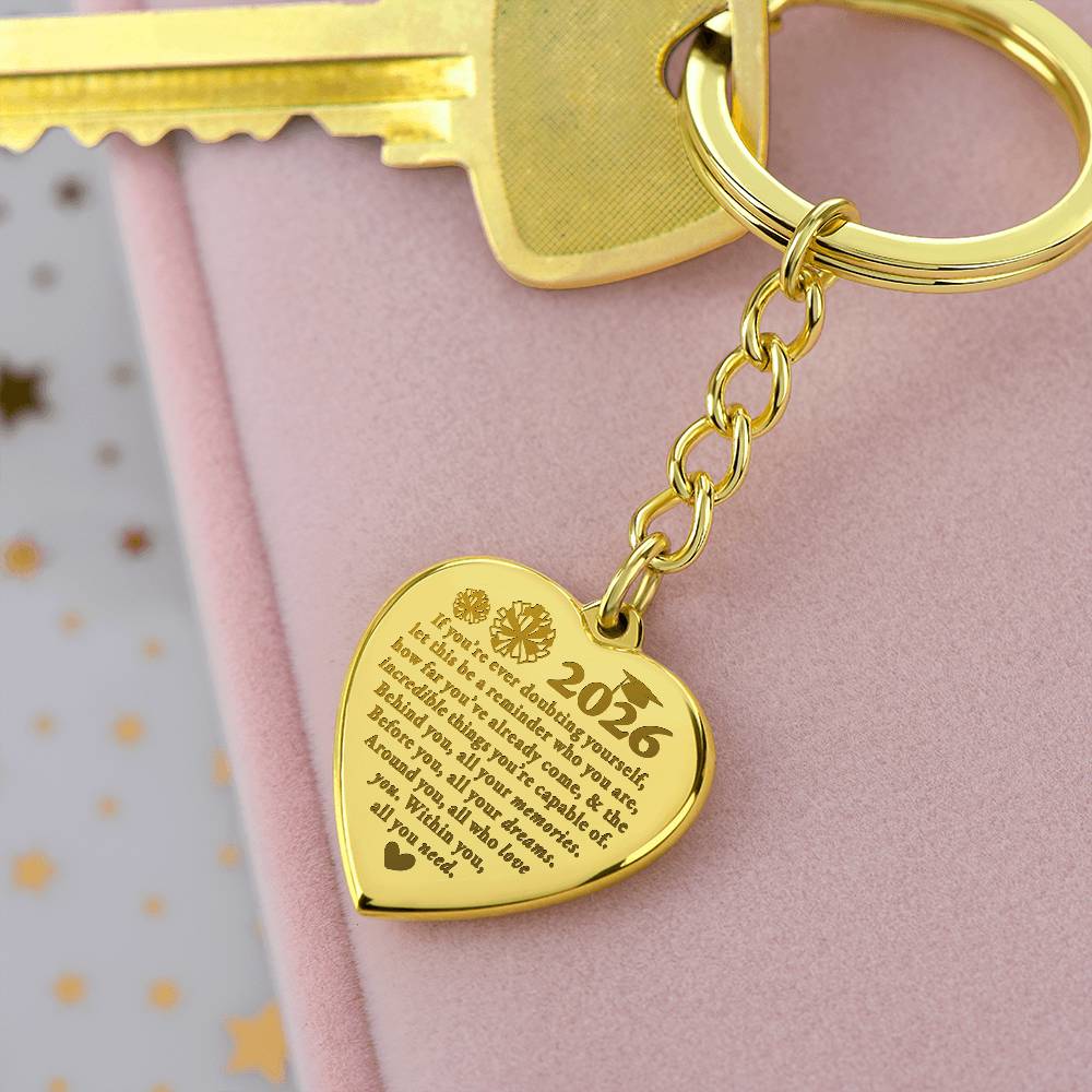 This lovely Engraved Heart Keychain is the perfect gift for a loved one on the go, keeping their keys safe in one spot! Customize the gift even more with a special message or date to the backside for an added personal touch. Made from polished stainless steel and available in 18K yellow gold finish. Your piece is lovingly packaged and shipped in a complimentary gift box for easy gifting.Cheer-Doubting-Behind-EngHeartBoth-2026-Updated