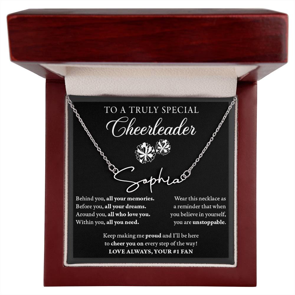 Personalized in a trendy signature style font and suspended on an adjustable stainless steel necklace with an optional 18k yellow gold finish, this is a perfect fit for any girl's jewelry collection.