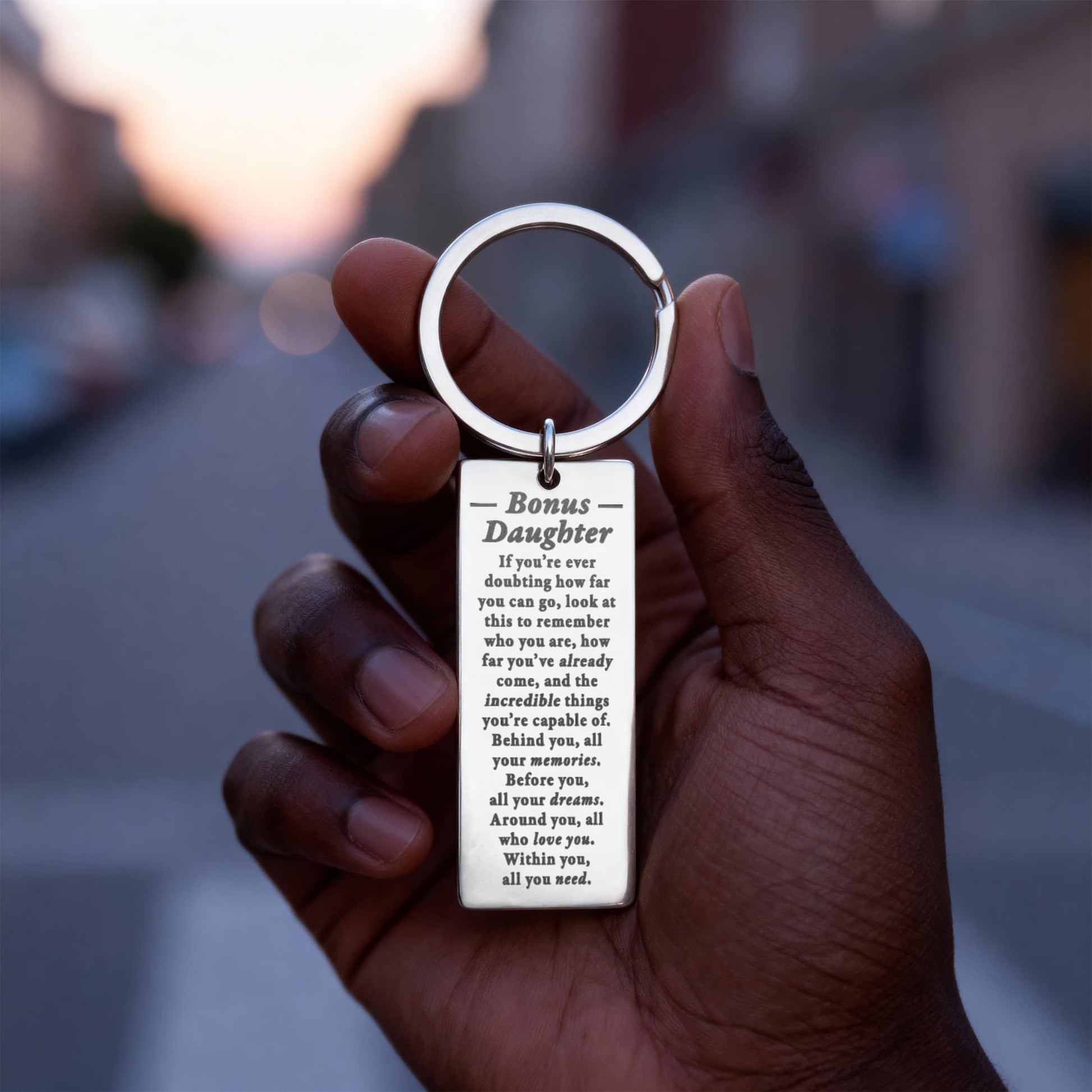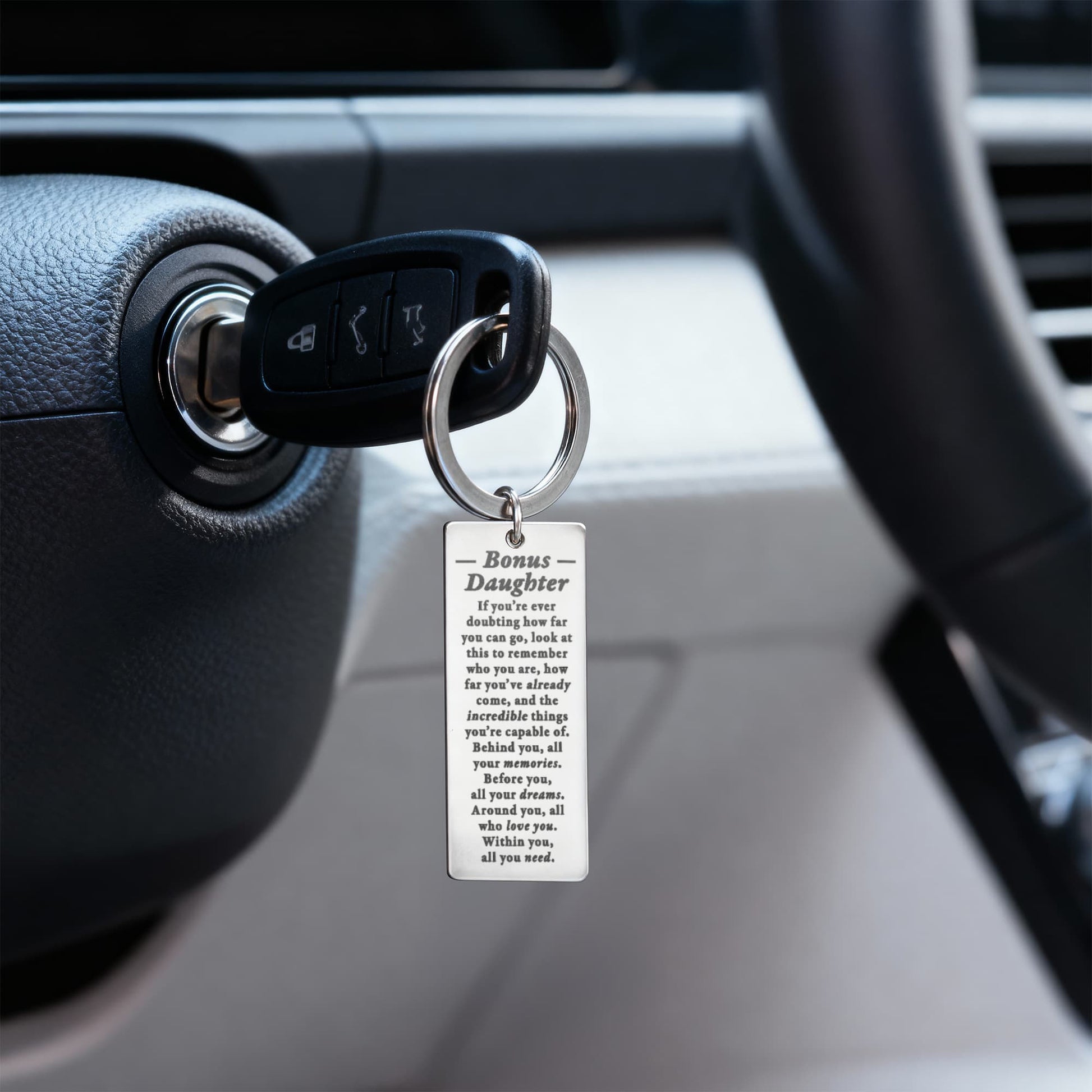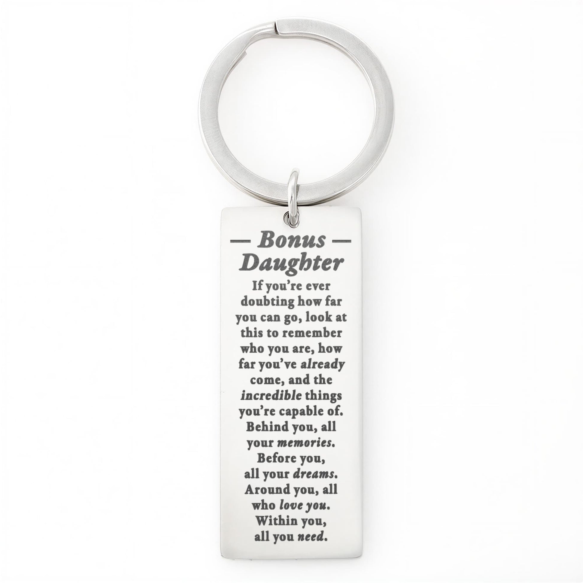 Give a gift that speaks from the heart with this Engraved Rectangle Keychain. Personalize it with a special message, date, or phrase that means the world to your loved one. Each keychain is laser-engraved with care, so your words will never fade. Every time they grab their keys, they’ll think of you.