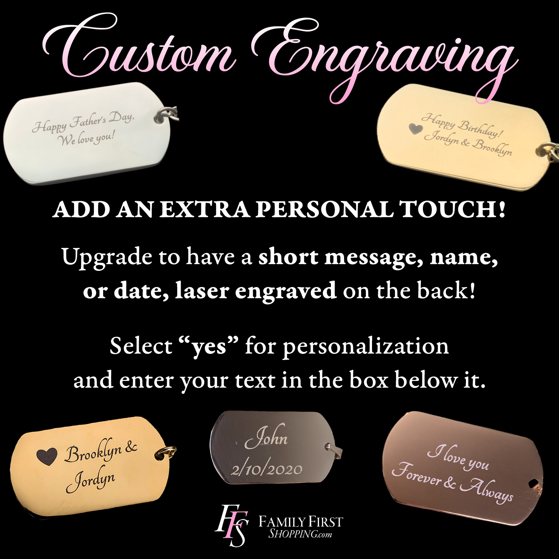 Upgrade to engrave a custom name, date, or short message, on the back for an extra sentimental touch!