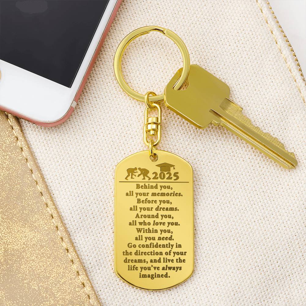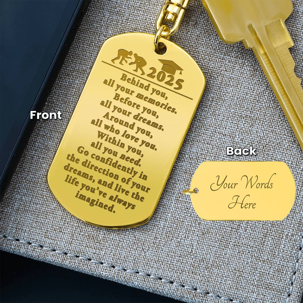 This attractive Engraved Dog Tag Keychain is the perfect gift for a loved one on the go, keeping their keys safe in one spot! Customize the gift even more with a special message or date to the backside for an added personal touch. Made from polished stainless steel and available in 18K yellow gold finish. Your piece is lovingly packaged and shipped in a complimentary gift box for easy gifting.